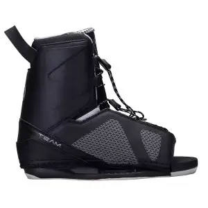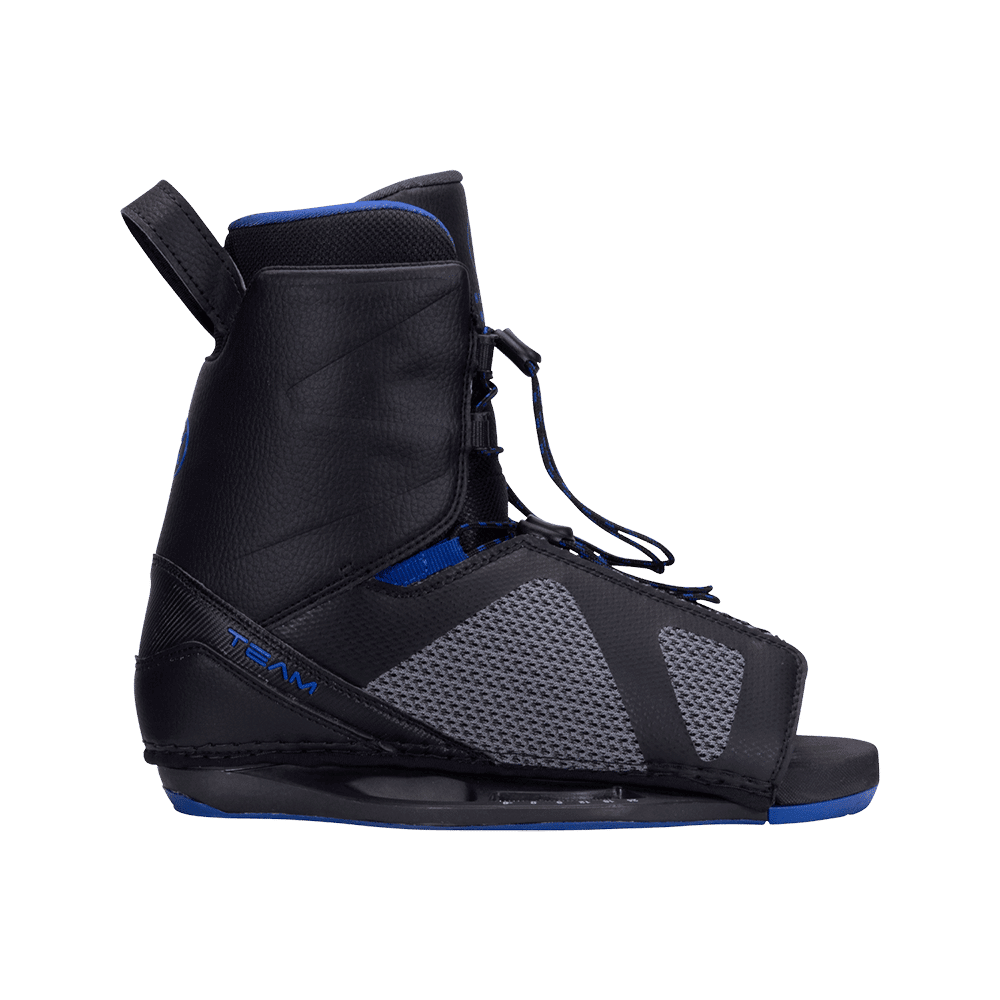 The slightly higher cuff and seamless liner construction allows for additional support with a comfortable fit. The adjustable open toe design makes it a great choice to accommodate a wide array of foot sizes. Dual quick cinch lace zones allow for easy entry and exit at the beginning or end of your set. The Team OT Binding also utilises the new Low Pro Plate System for a lighter weight feel and the closest foot to board connection possible.