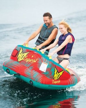 HO Sport Laguna 2 tube is a modular, towable tube made for 2 people. The Laguna 2 will keep you where you want to be…on the water all day long Grab a buddy and sit down in the ergonomic, lounge style seats OR flip the tube around and kneel on the neoprene pads while towing…